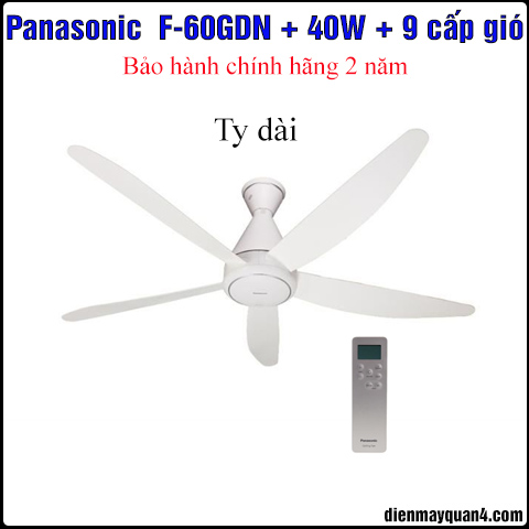 Quạt trần Panasonic 5 cánh F-60GDN 40W có công suất hoạt động 40W với 5 cánh quạt thiết kế 3D giúp tạo ra luồng gió mạnh mẽ, đồng thời vẫn đảm bảo độ êm ái khi hoạt động, là một lựa chọn đáng cân nhắc cho gia đình bạn.