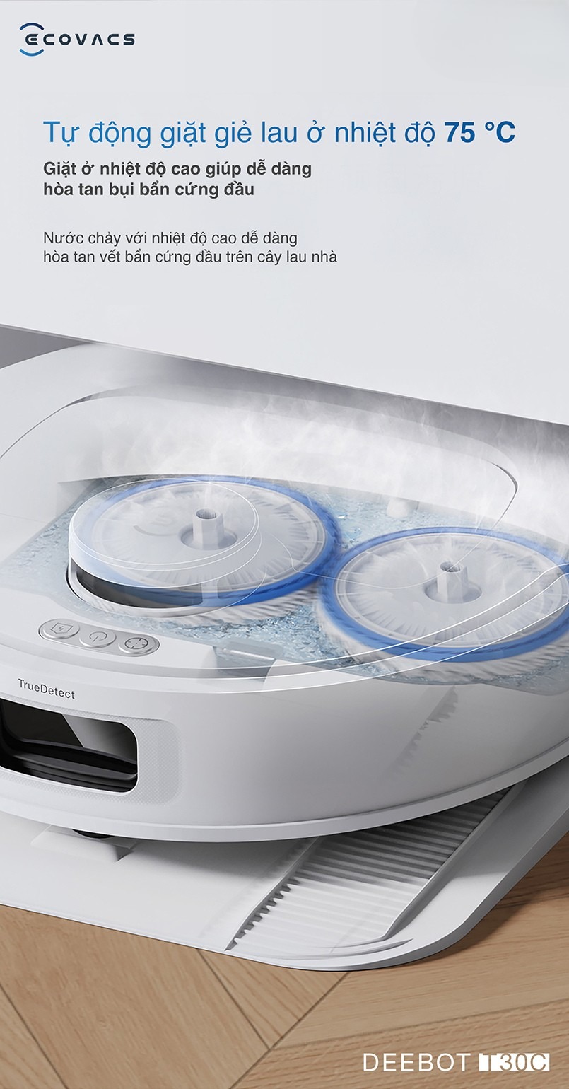 Kết hợp cùng nước nóng 75°C, Ecovacs Deebot T30C 2026 không chỉ lau sạch mà còn khử khuẩn mạnh mẽ đến 99.99%.