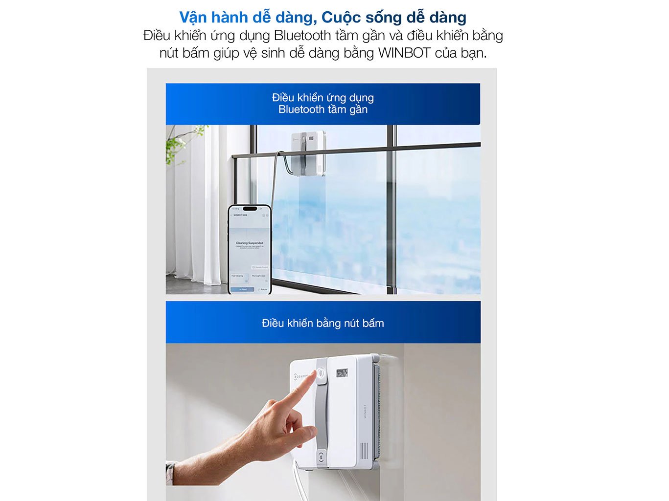 Tính năng thông báo bằng giọng nói, theo dõi trạng thái, hoặc chọn chế độ làm việc giúp việc lau kính trở nên nhẹ nhàng và tiện lợi hơn bao giờ hết.