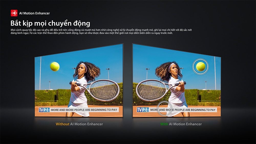 AI Motion Enhancer & 144Hz Refresh Rate: Hạn chế xé hình, tối ưu khung hình khi xem thể thao hoặc chơi game.