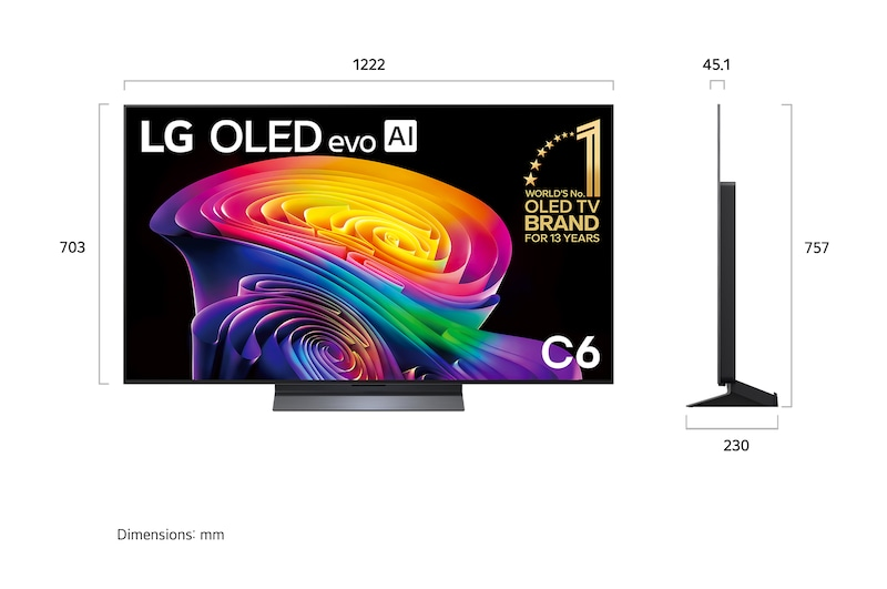 Smart TV LG C6 4K 55 Inch OLED55C6PSA được thiết kế với độ mỏng ấn tượng chỉ 45.1mm, mang lại vẻ đẹp hiện đại, tinh tế, phù hợp với mọi không gian nội thất.