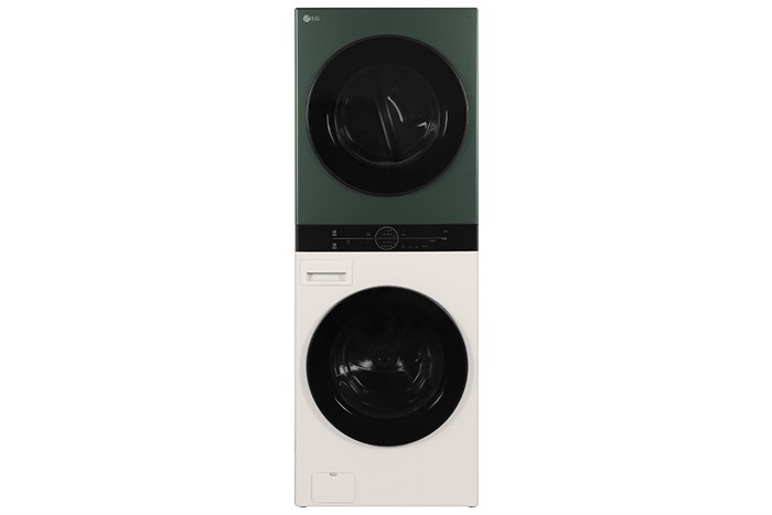 Tháp giặt sấy LG Inverter giặt 25 kg - sấy 17 kg WT2517NHEG sở hữu thiết kế dạng tháp liền khối, giúp tiết kiệm diện tích đáng kể so với việc lắp đặt máy giặt và máy sấy rời.