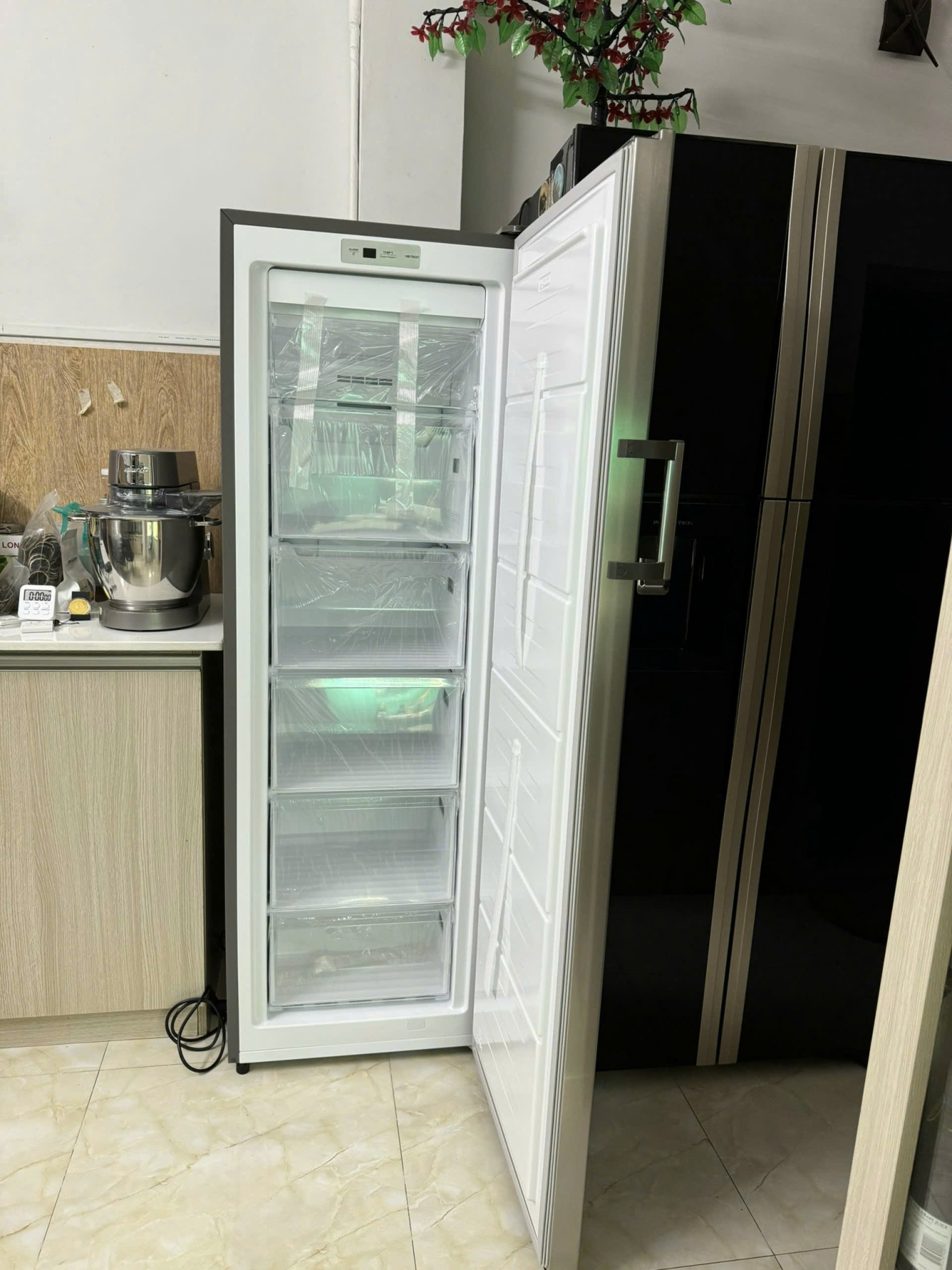 Tủ đông đứng có thiết kế đứng như 1 chiếc tủ lạnh truyền thống. Đồng thời, tủ được trang bị nhiều ngăn nhỏ bên trong tối ưu hóa không gian. Bạn có thể bảo quản nhiều loại thực phẩm hơn mà không lo thiếu diện tích.
