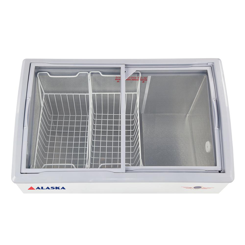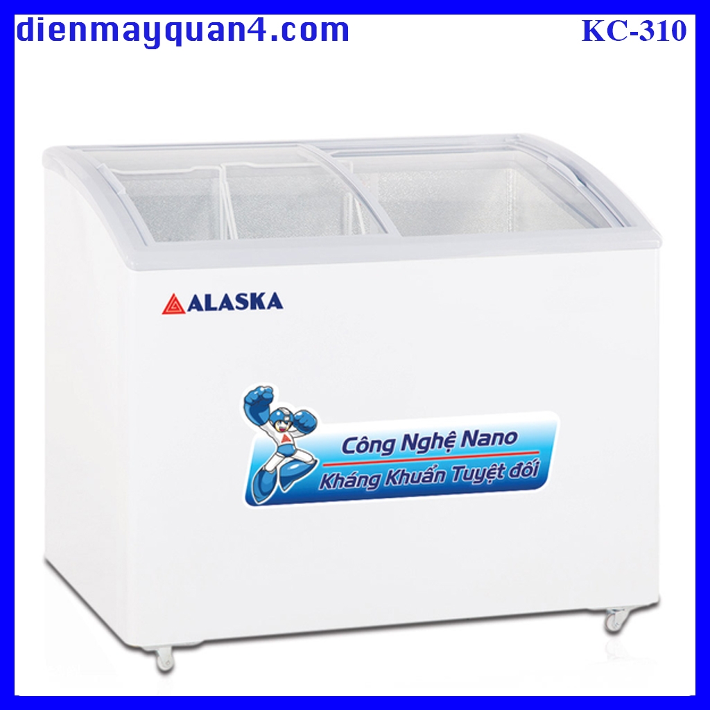 Tủ đông Alaska KC 310 với thiết kế 2 nắp kính cong chịu lực, mở kiểu cửa lùa, có khóa an toàn giúp dễ dàng quan sát cho hoặc lấy thực phẩm trong tủ. Lòng tủ bằng nhôm phẳng lạnh nhanh, chống đóng tuyết tối đa.