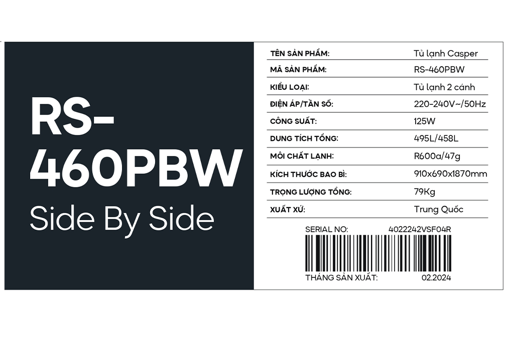 Tủ lạnh Casper Inverter 458 lít RS-460PBW sở hữu thiết kế Side by Side sang trọng và tinh tế, chứa nhiều ngăn chứa bên trong, tiết kiệm điện năng hiệu quả với công nghệ Advanced Inverter, tích hợp bảng điều khiển cảm ứng và ngăn lấy nước ngoài trên cửa tủ, hệ thống làm lạnh đa chiều Multi Air Flow lan toả đều hơi lạnh bên trong các ngăn chứa để thực phẩm luôn được tươi ngon.