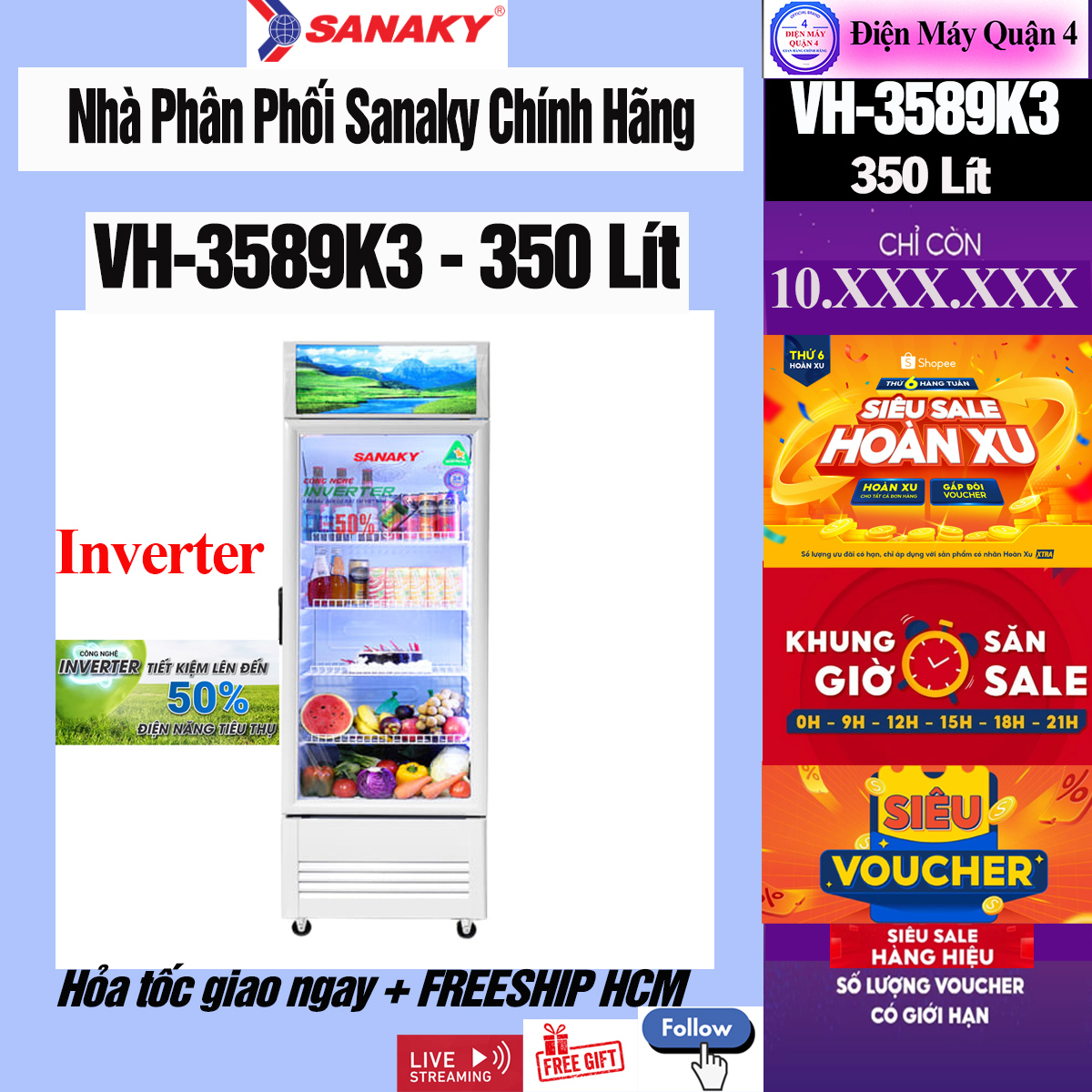 #TủMátSanaky #Sanaky350Lít #SanakyInverter #TủMátTiếtKiệmĐiện #ĐiệnMáyQuận4 #TủMát1Cửa #SanakyVH3589K3 #TủMátInverter #MuaHàngChínhHãng